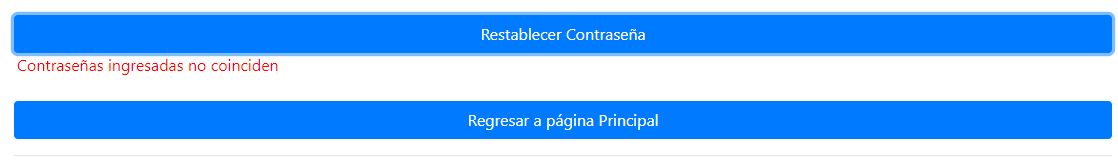 Una vez restablecida la contraseña se borrará el Token y se le mostrará al usuario el siguiente error