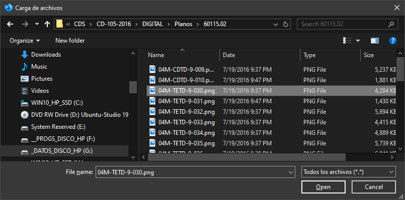 al Presionar el botón "SUBIR" se abrirá una ventana que permite seleccionar archivos existentes en otra localidad del disco. tal como se muestra a continuación
