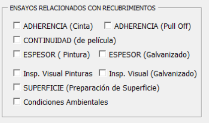 Fig 634 Extracto de opciones de tipos de informes en plantilla Excel para familia de inspección "recubrimientos"